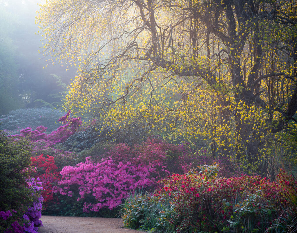 Le photographe britannique de jardins et de paysages Stephen Stud a obtenu le premier prix (photo de couverture) dans la catégorie Beaux Jardins de cette édition. Un matin de printemps dans les jardins d'Exbury, dans le Hampshire, en Angleterre, il a eu la chance de voir la lumière du soleil traverser la cime des arbres et éclairer le spectacle spectaculaire de couleurs qu'il a pu découvrir et capturer avec son appareil photo depuis l'étang intérieur du jardin.