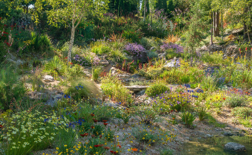 Parmi les photographies finalistes, de véritables joyaux se démarquent, comme celle prise au Jardin sauvagele jardin conçu par Keith Wiley dans le Devon, en Angleterre. L'image du photographe britannique Dianne Gilles capture une profusion vibrante de plantes vivaces florissant entre pentes rocheuses et lits sablonneux dans une zone du jardin dédiée au peintre britannique Ros Wylie, épouse de Keith Wiley et co-créateur du jardin Wildside, décédé en 2021.
